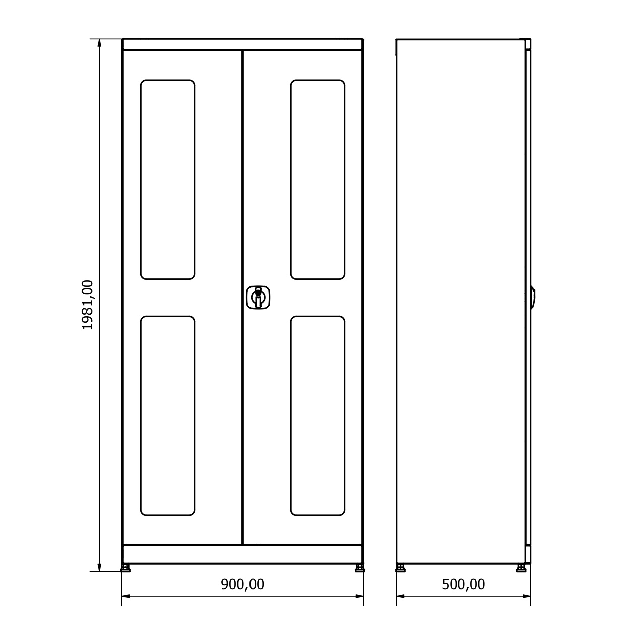 - H1980xW900xD500mm boyutlarındadır.